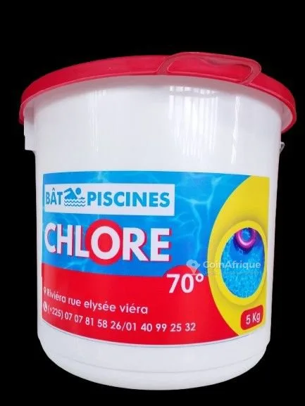tChlore 70° – seau de 5 kg traitement professionnel pour piscine – bat-piscines gardez une eau propre, saine et parfaitement désinfectée grâce à notre chlore 70° hautement concentré, idéal pour l’entretien régulier et les traitements choc de piscine. ✔️ forte concentration (70%) : efficacité maximale contre bactéries, virus et algues ✔️ action rapide et puissante : eau claire en peu de temps ✔️ longue durée d’action : protège durablement votre piscine ✔️ format économique 5 kg : parfait pour particuliers et professionnels ✔️ utilisation polyvalente : entretien courant ou traitement choc ???? avec le chlore 70° bat-piscines