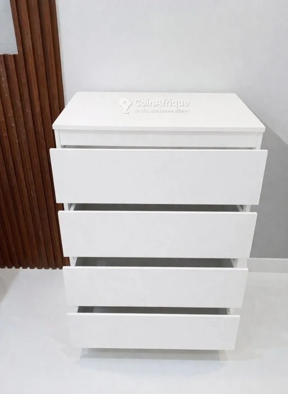 tLargeur 40 profondeur 41 hauteur 90 cm 4 grands tiroirs profonds (vêtements, dossiers, accessoires) format vertical : parfait pour chambres et studios design minimaliste blanc élégant structure stable et durable facile à intégrer dans tout type d’intérieur moderne (compacte en largeur, grande capacité de rangement