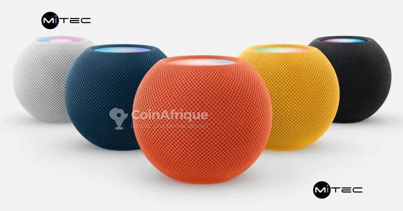 tHomepod neuf en promo à mitec ci livraison rapide avec reçu et garantie. caractéristiques : type : enceinte intelligente audio : son haute fidélité, basses puissantes haut-parleurs : boomer + 5 tweeters assistant : siri intégré connexion : wi-fi + bluetooth fonctions : musique, commandes vocales, maison connectée audio : spatial avec dolby atmos micro : 4 micros (commande à distance) compatibilité : iphone, ipad, apple tv couleurs : blanc / noir (minuit) produit neuf et authentique avec une garantie réparation constructeur de 12 mois.