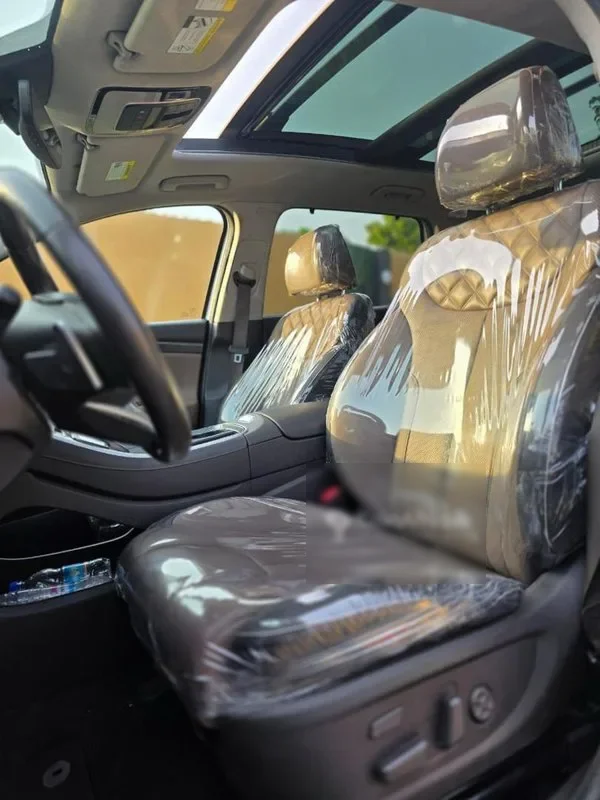 t *hyundai santafe hybrid* année 2023 essence automatique 4 cylindres climatisation d’origine intérieur cuir démarrage start camera de recul 360° capteurs de proximité toit panoramique charge à induction coffre électrique kilométrage 20.000 full full options véhicule impeccable immatriculation en cours prix : 28.800.000 ttc