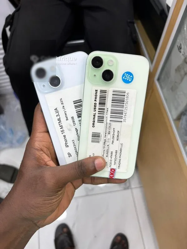 t Tsg multi-services vous présente: iphone 15 simple 128g téléphone quasi aucun défaut état neuf tout est d’origine tout passe parfaitement batterie béton vendu avec reçu et 1 mois de garantie prix 128g : 300.000 f 256g : 320.000 f