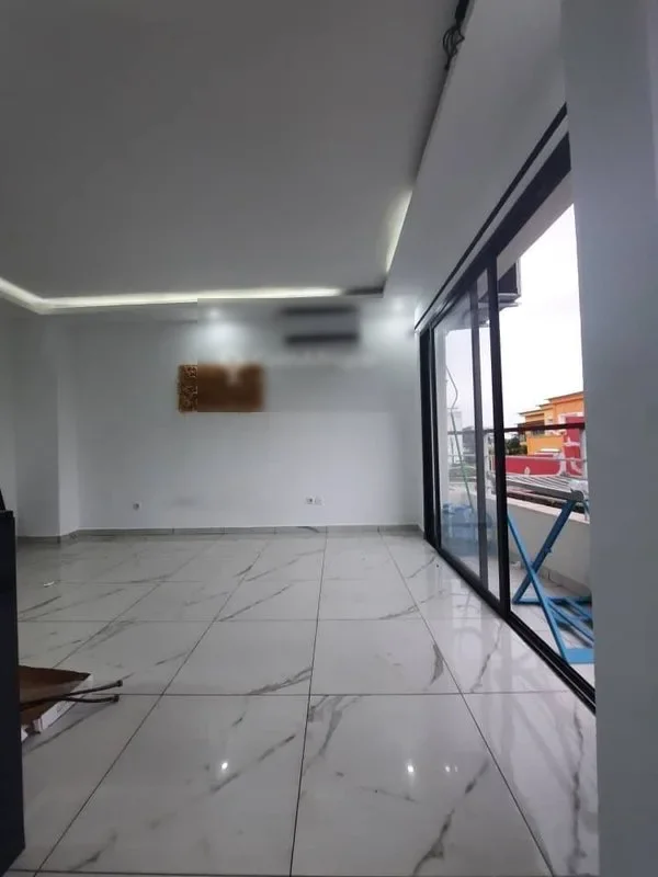 t Nous mettons en location un magnifique et somptueux appartement de type 4 pièces au 3e étage d'un immeuble situé à cocody angré 7e tranche cité zinsou 1 , le bien est composé de : # un séjour lumineux avec une cuisine ouverte sur le séjour # 3 chambres # 3 salles d'eau # une cuisine équipée ouverte sur le séjour # des spots lumineux # Installations Splits # Installation chauffe eau # baies vitrées # 2 balcons # buanderie # ascenseur dans l'immeuble N.B: appartement récent , les pièces ne sont pas très spacieuses mais c'est très beau, idéal pour quelqu'un qui veut une 3 ou 2 pièces haut standing Loyer : 400.000 fcfa
