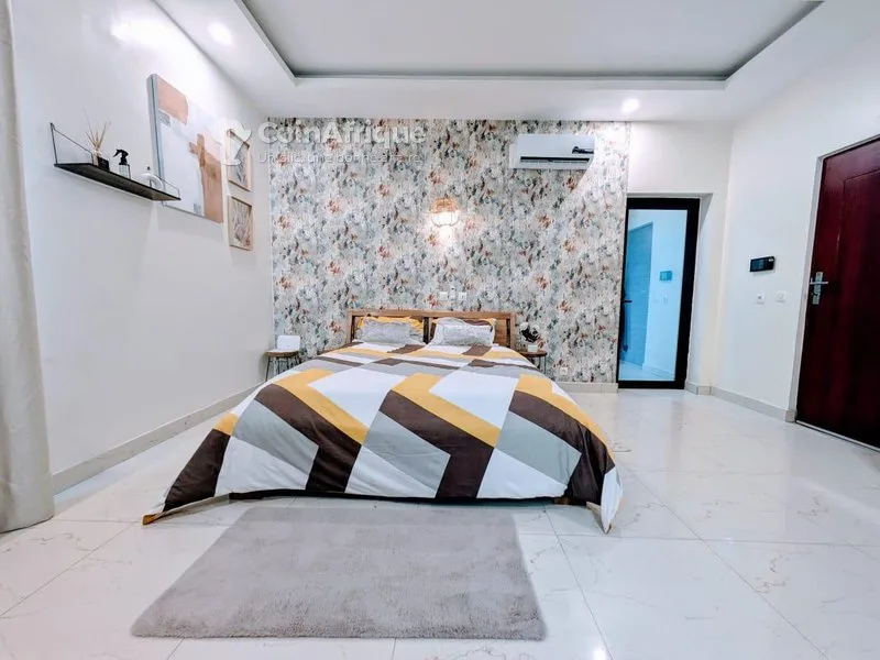 tProfitez de ce charmant studio situé en plein cœur de riviera bonoumin l’adresse idéale pour vos courts et longs séjours à abidjan. tout y est pour votre confort ✅wifi illimité ✅climatisation+ chauffe eau ✅1 cuisine entièrement équipée ✅1 grande pièce de vie ✅1 salle de bain ✅1 parking interne ✅1 service de ménage assuré 1 à 2 fois par semaine le studio se trouve au 2 ème étage ( avec ascenseur) d'un immeuble récent et ultra sécurisé situé à 5 mn a pied d’abidjan mall, appelez nous dès maintenant pour réserver