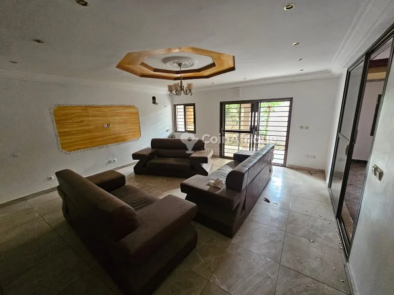 tÀ louer villa duplex de 9 pièces à louer dans cité synacasy 2 riviera 3 proche des écoles internationales françaises et américaines. elle est composée de : - 3 séjours lumineux - 6 chambres autonomes avec dressing dans la chambre principale - une salle de jeux - 2 cuisines - une buanderie - des balcons - garage de 2 voitures - une dépendance prix : 2 millions négociable f.ē.l.į.č