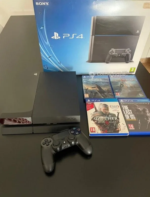 tPs4 fat disponible 500gigas neuf dans le cartons avec les accessoires complets dispose ( 2 manettes+ 4jeux cds ps4 tels que fc25 , naruto shippuden ultimate storm , call of duty moderne warfare, résidence evil ) troc possible achat avec les papiers et garantie 6 mois stock limités