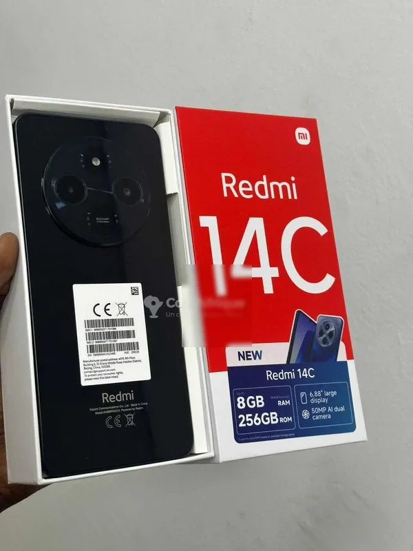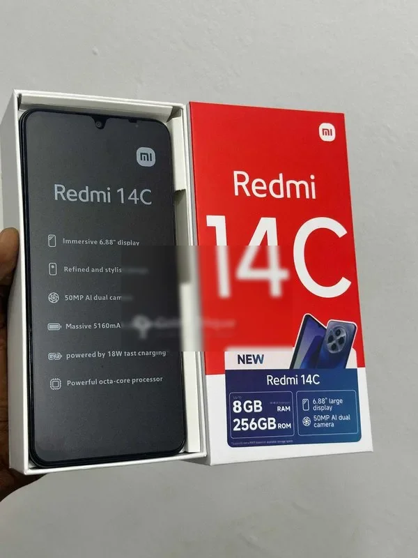 t Redmi 14c nouveau dans carton scellé capacité: 256go+8gb de ram batterie 5000mah double sim réseau 5g prix: 75000f magasin situé à yopougon vendu avec garantie et reçu d'achat livraison possible
