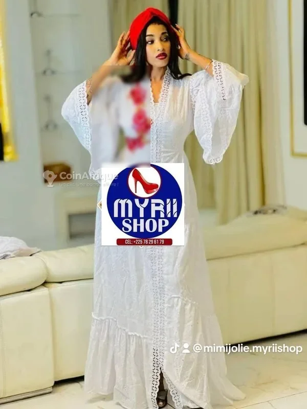 t Caftan blanc élégant à broderies florales sublimez votre allure avec ce caftan blanc long, fluide et raffiné. ses manches évasées, ses broderies délicates et son motif floral rose apportent une touche féminine et sophistiquée. idéal pour vos cérémonies et occasions spéciales. ???? disponible chez myrii shop