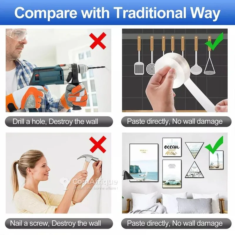 tRubans adhésifs à double face ( 2 rubans à 5000f) rubans adhésifs à double face pour éviter de percer vos mur et décorer vos maisons en beauté. nb: 2 rubans à 5mille