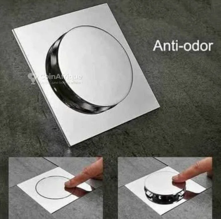 t*couvercle anti-odeur* pour un évier ou un drain de sol, généralement utilisé dans les cuisines ou les salles de bain. voici ce qu'on peut en déduire : 1. *fonction* : il s'agit d'un dispositif anti-odeur qui empêche les mauvaises odeurs de remonter du drain. 2. *mécanisme* : le couvercle en métal (acier inoxydable) se pose sur une plaque carrée avec un joint circulaire. en appuyant dessus, il s'enclenche pour fermer hermétiquement le trou du drain. 3. *utilisation* : il est facile à installer et à nettoyer, souvent utilisé pour les drains de sol ou les éviers sans siphon visible. tu veux savoir où acheter ce type d'objet