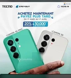 t nous vendons les téléphones à crédit avec seulement 70 mille premiers versement et votre pièce d’identité vous repartez avec le téléphone. puis vous payerez 17k par semaine sur 12 semaine .