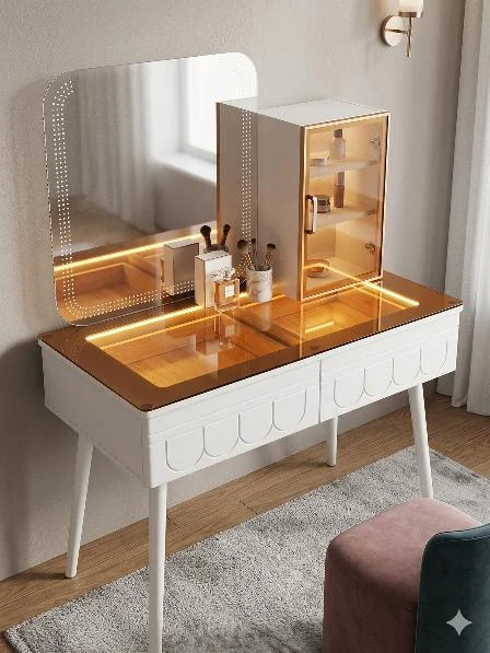Coiffeuse moderne avec miroir LED et rangements