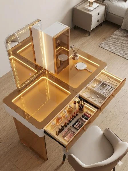 Transformez votre routine beauté avec notre Coiffeuse Royale Nouvelle Génération ! Un design épuré, une technologie LED intégrée et un rangement intelligent pour sublimer votre intérieur.