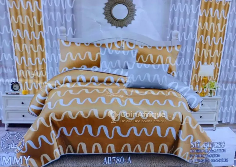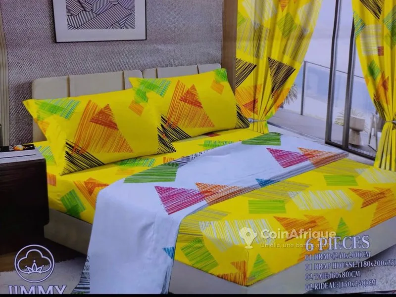 t2 draps house + 2 rideaux +2 taies oreiller super pour la chambre a seulement 15000f vous profitez d'un package de drap. type de produit : parure de lit (drap, taies d'oreiller, rideaux). motif : motif monogramme de style louis vuitton. composition de l'ensemble : six pièces, incluant : 02 draps (240x260 cm). 02 taies d'oreiller (60x80 cm). 02 rideaux (150x240 cm). couleur dominante : couleur a vos choix. livraison et expedition partout abidjan