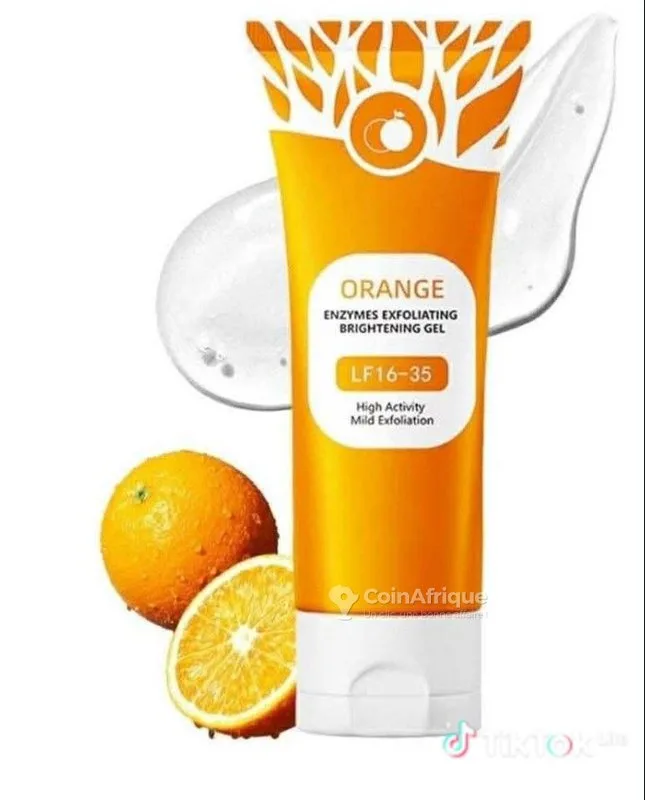 tGel exfoliant orange le produit "peau propre" est un gel aux enzymes d'orange pour enlever les peaux mortes et éclaircir le teint. ✓gommage doux sans grains qui blessent ✓teint plus clair et lisse dès la première utilisation ✓enlève les peaux mortes