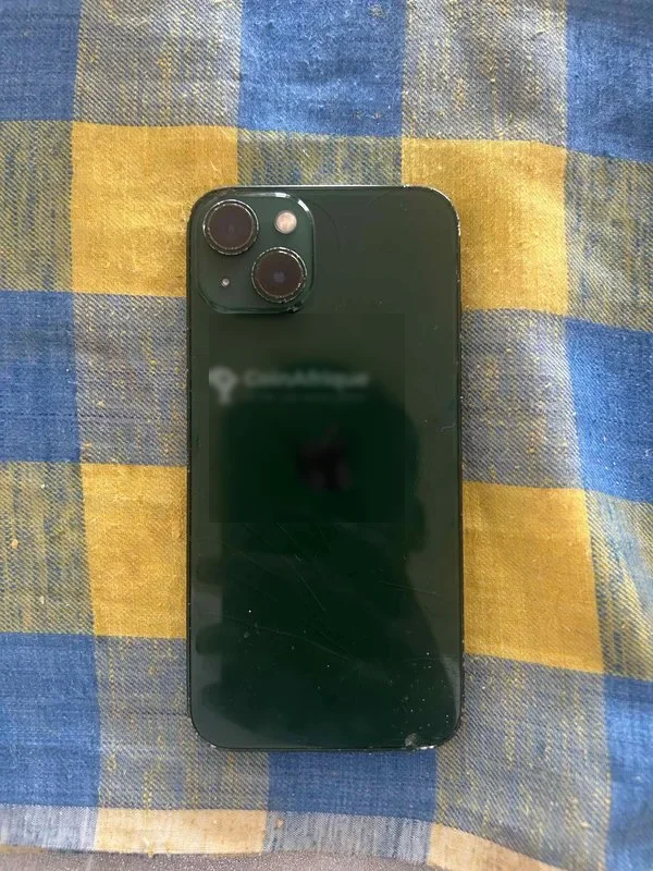 t Iphone 13 simple vert 128gb jamais démonté toutes les pièces sont d’origine fissure à l’arrière mais sans gêne batterie à 73%