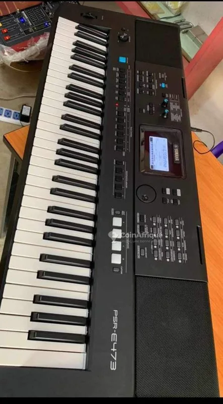 tPrix: 259.000f pourcentage de réduction: 0% description/ détails: piano numérique yamaha psr-e473. clavier : 61 touches dynamiques (sensibles à la vélocité) polyphonie : 64 voix maximum simultanément 758 voix/sons de piano et d'instruments 235 styles d'accompagnement automatique fonction d'apprentissage et d'entraînement musical 16 pads de percussion ecran lcd rétro-éclairé haut-parleurs stéréo intégrés connexions : casque, pédale, usb, midi alimentation sur secteur ou piles dimensions : 102 x 36,5 x 12,6 cm poids : 5,3 kg