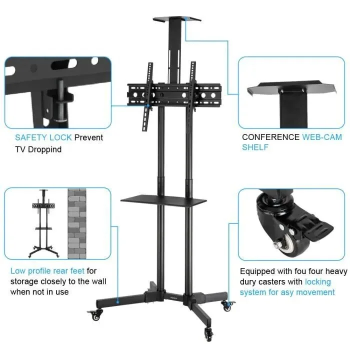 Support TV Mobile Chariot Télévision de 32"-70" Pouces Plasma/LCD/LED avec Plateau Support de Fixation VESA