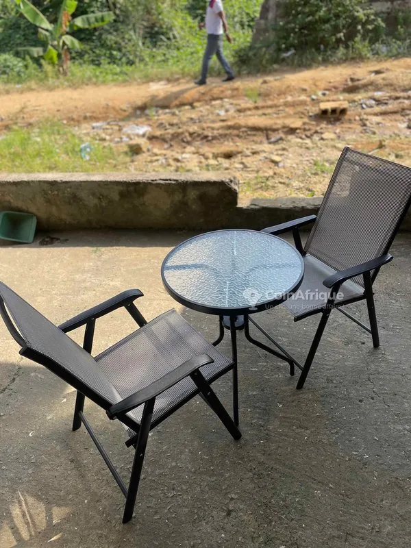 Table vitré avec deux chaises super solides et confortable