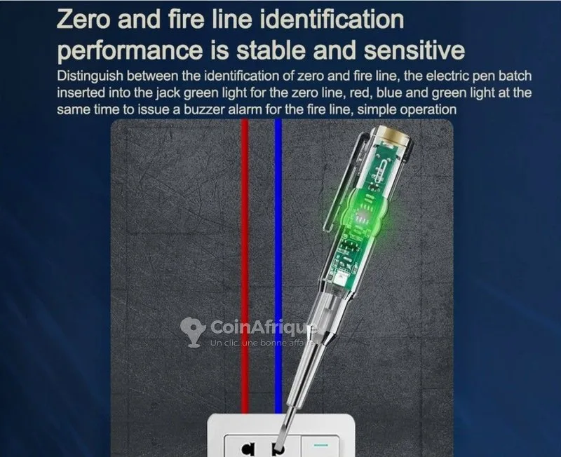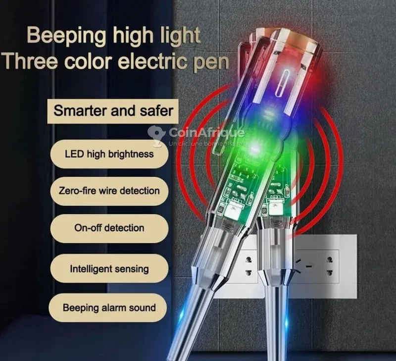 tCe testeur vous permet de detecter la tension du courant grâce a son bip sonnor et la lumière multicolor, ainsi il vous facilite les dépannage.