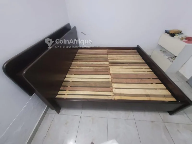 Lit bois noir laqué avec tête de lit